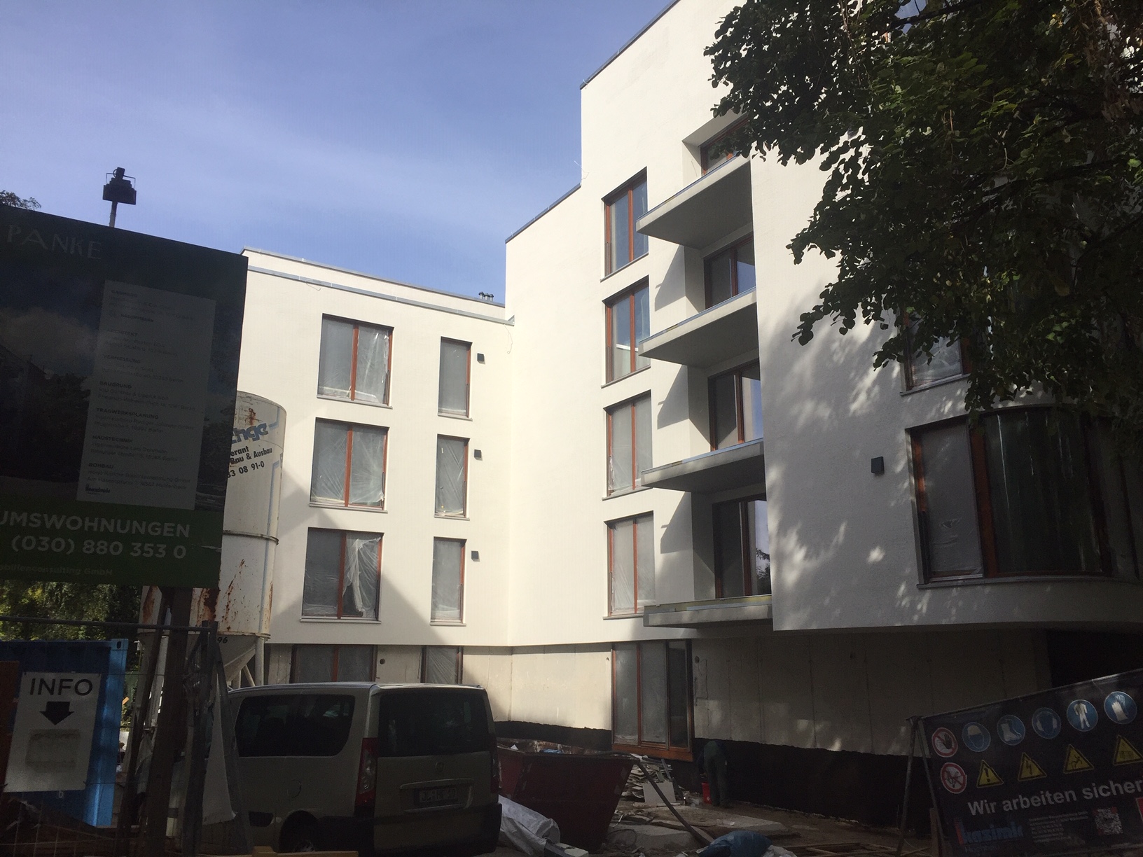 In unserem Bauvorhaben in der Wilhelm-Kuhr-Straße 41/42 wurde das Gerüst bereits abgebaut und die Fassadengestaltung nimmt Form an. In den kommenden Tagen wird nun der Klinker am Sockel angebracht und auch mit den Arbeiten an den Aussenanlagen kann begonnen werden.